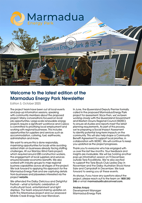 Welcome to the third edition of the Marmadua Energy Park newsletter.